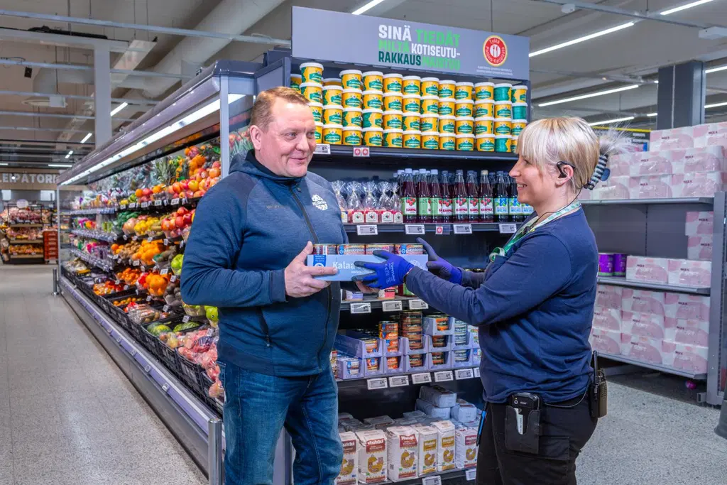Markus Tolvanen perusti Pielisen Kalajaloste Oy:n vuonna 1994 ja pyörittää sitä yhä yhdessä puolisonsa Raakel Tolvasen ja heidän lastensa kanssa. Markus Tolvasta voi pitää lähiruoka-ajattelun edelläkävijänä, sillä hän mietti jo 1990-luvulla, että ulkomailta tuodaan Suomeen myyntiin paljon tonnikalaa ja asialle pitäisi tehdä jotain, koska kotimaistakin kalaa olisi runsaasti saatavilla.Siitä alkoi pitkäjänteinen tuotekehitys sekä lahnanperkauskoneen kehittely ja rakentaminen, joka edesauttoi tuotannon lisäämistä ja kalajalosteiden saamista kauppoihin. Tuolloin osuuskauppa Jukola otti mielellään paikallisia tuotteita myyntiin ja näin ollen Pielisen kalasta valmistetut säilykkeet löysivät tiensä ihmisten lautasille jo yrityksen varhaisessa vaiheessa.Vuosi 2019 oli käänteentekevä, kun Pielisen Kalajaloste toteutti ison investoinnin Nurmeksen Pitkäkoskella sijaitsevissa tuotantotiloissa. Purkituslinjaston laajentamisen myötä purkituskapasiteetti kasvoi kymmenkertaiseksi ja uudentyyppiset, kotimaisesta kalasta valmistetut tonnikalamaiset säilykkeet tulivat samalla markkinoille rytinällä.– Viimeisen kuuden vuoden aikana toiminnassa on tapahtunut iso harppaus. Investoinnin ansiosta saadaan purkitettua 30 000 purkkia kalaa päivässä. Hinnat on myös saatu kuluttajien kannalta järkeväksi volyymin kasvaessa ja tuotekin on hyvä, Pielisen Kalajalosteen myynnistä ja markkinoinnista vastaava Juha Halonen summaa.Kuvassa Pielisen Kalajalosteen Juha Halonen sekä Porokylän S-marketin silloinen palveluvastaava Heini Kortelainen. Kuva: Risto TakalaYhteistyö osuuskauppa Jukolan ja myöhemmin PKO:n kanssa on jatkunut mutkattomasti vuosien ajan. Sujuva kumppanuus on antanut osaltaan myös varmuutta investointien toteuttamiselle.Halosen mukaan PKO:lla on aito halu nostaa paikallisia tuotteita esille. Esimerkiksi Pielisen Kalajalosteen tuotteita on saatavilla kaikissa PKO:n myymälöissä. Lisäksi kalasäilykkeitä on käytössä PKO:n ravintoloissa sekä myynnissä hotelleissa.Viime vuosina Pielisen Kalajaloste on investoinut myös laajemmin omaan kalastukseen. Kalaa pyydetään Pielisen lisäksi Perämereltä ja Savon vesistä. Raaka-aineen saatavuus on syytä varmistaa, sillä vientiä on tarkoitus lisätä ja kotimaan markkinat kasvavat yhä.Tällä hetkellä Pielisen Kalajalosteen tonnikalan korvaajina toimivia tuotteita, jotka sisältävät muiden muassa lohta, särkikaloja, muikkua ja silakkaa, on saatavilla noin 2000 kaupan hyllyiltä kautta maan. Pielisen Kalajalosteen tuotteita löytyy myös S-ryhmän oman Kotimaista -tuotemerkin alta.