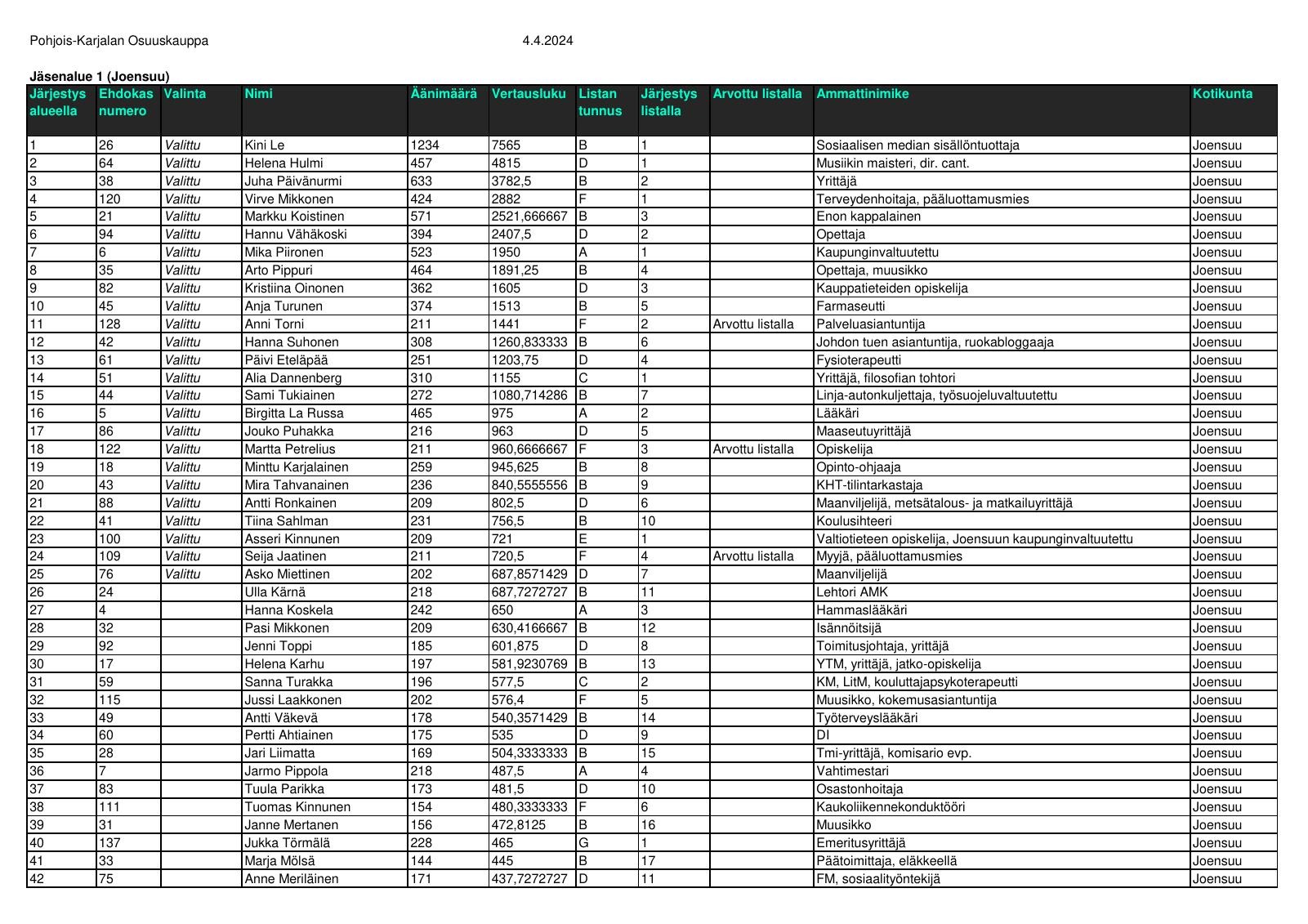 PKO:n edustajisto valitaan 4 vuoden välein. Edelliset edustajiston vaalit olivat vuonna 2024.